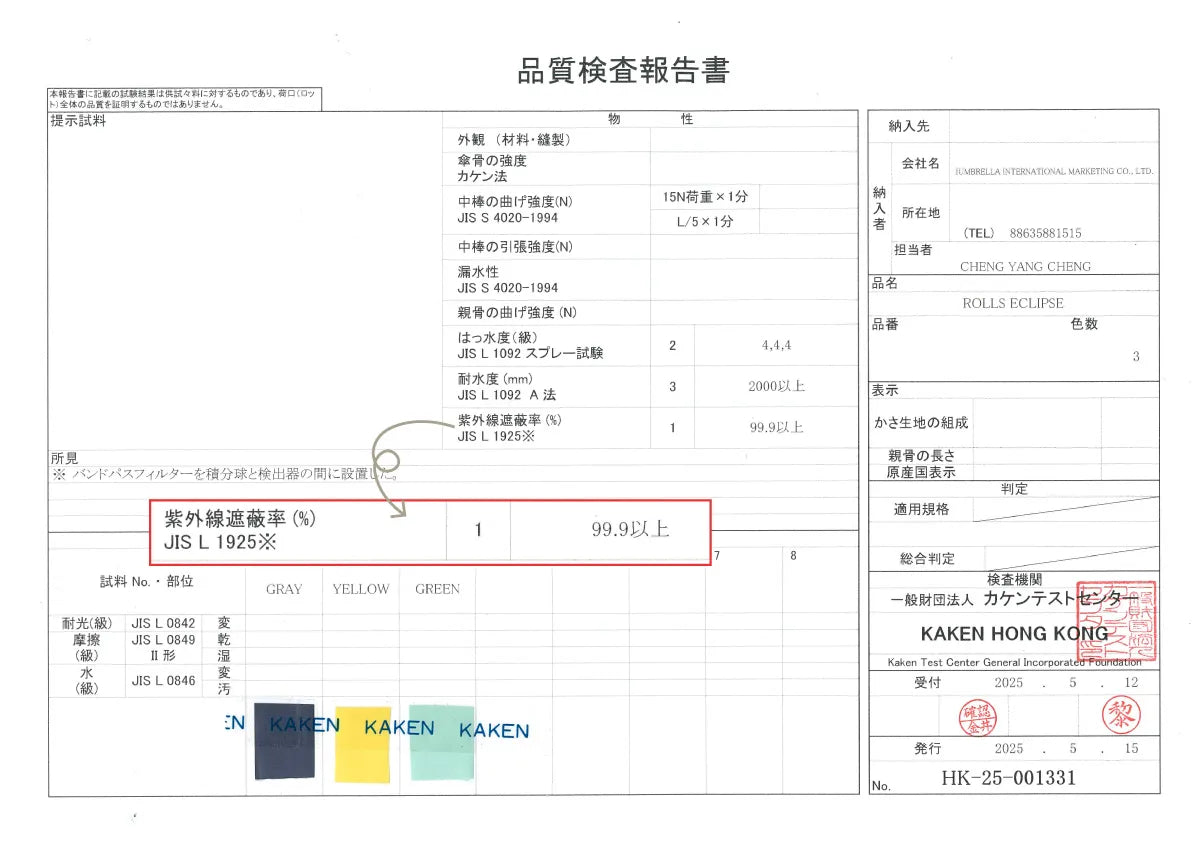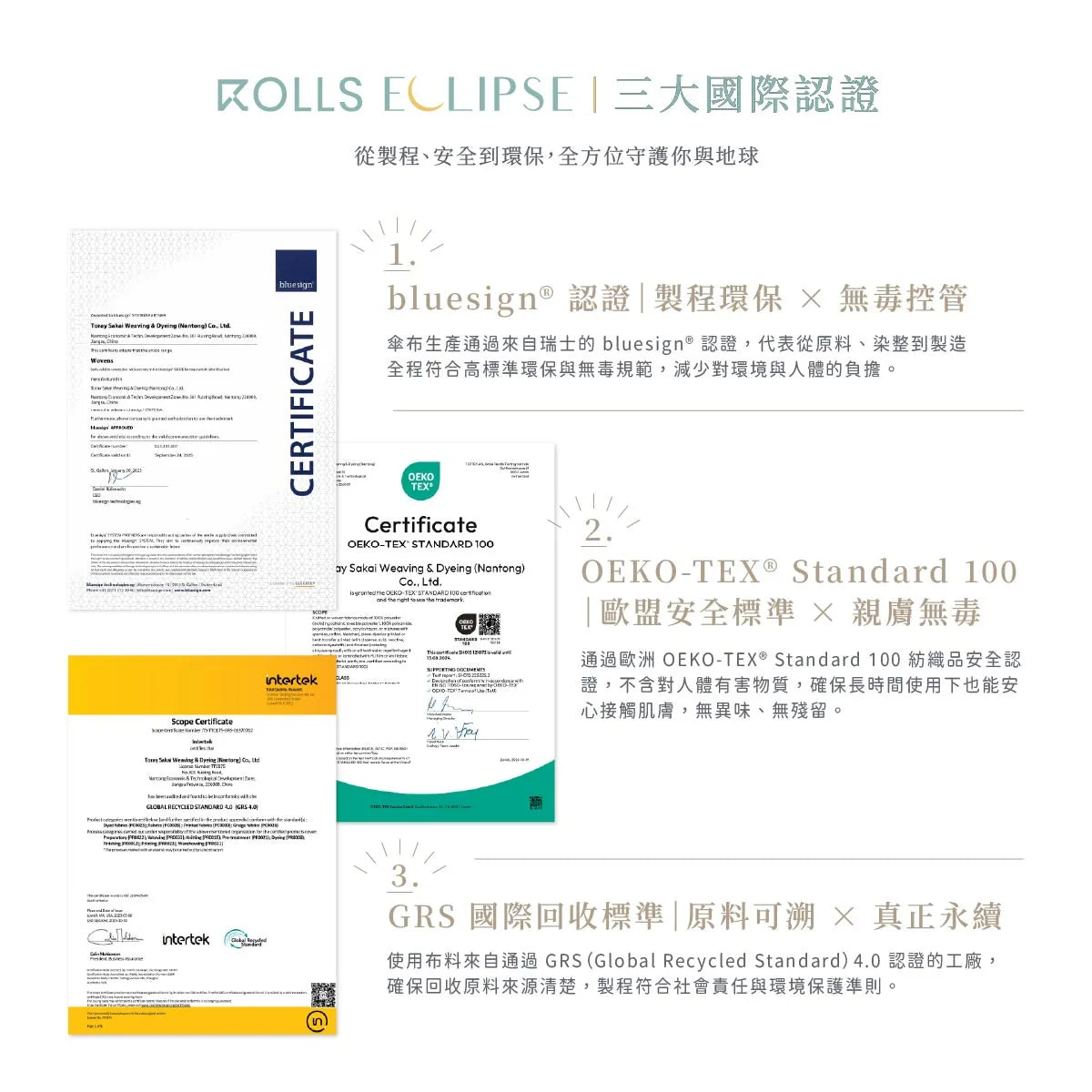 傘布材質: TORAY 集團東麗酒伊南通 (TSD) 指定特規面料100%聚酯纖維*25D*430T+PET塑型膜+奈米超撥水