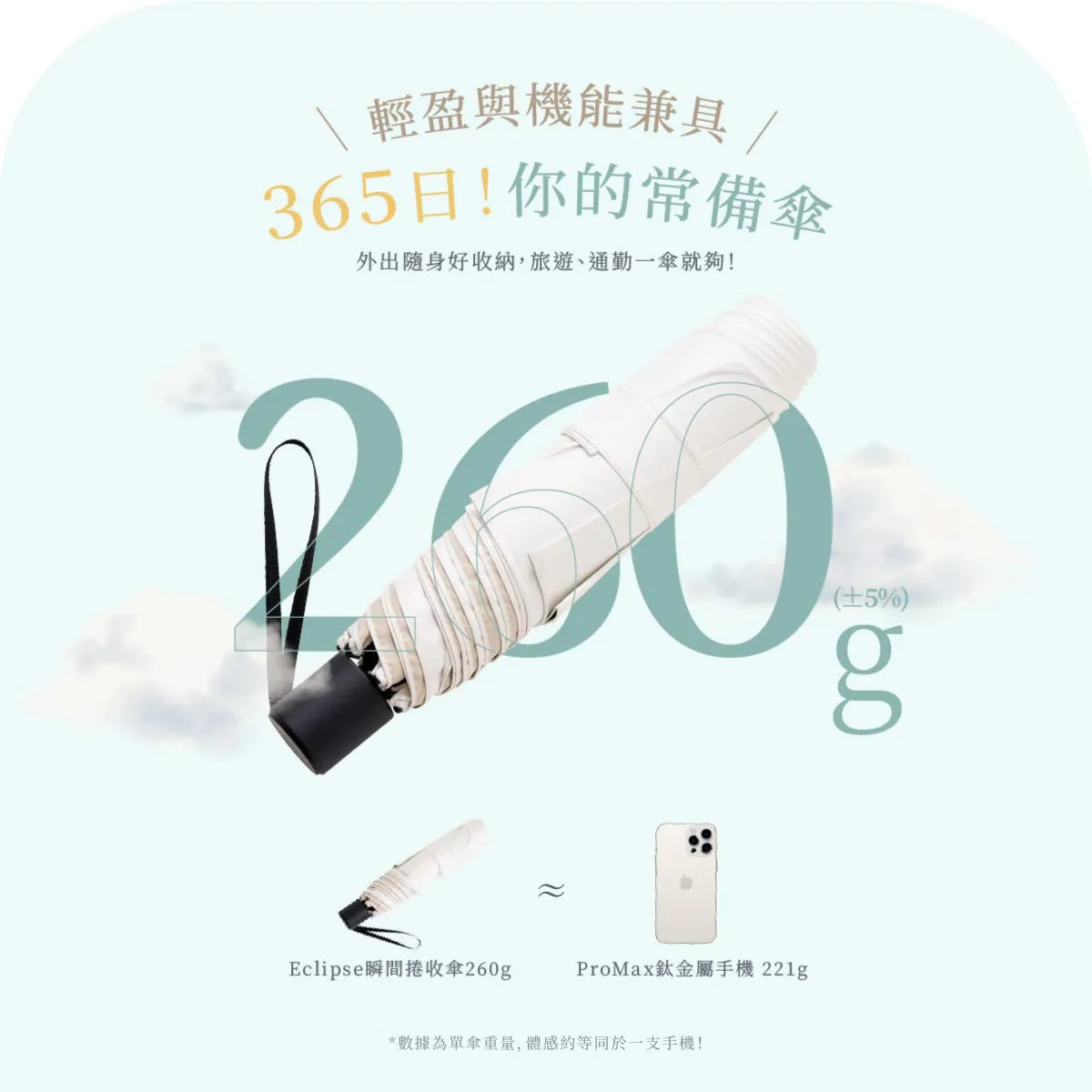 嘖嘖募資破百萬支持!日蝕傘擁有獨家專利結構,半推即開、一鍵瞬間捲收,傘布平整不皺。SGS認證一級遮光,UPF1000+ 有感降溫19℃。奈米撥水快乾,大傘面輕巧好攜帶,是您夏日防曬與午後雷陣雨的最佳自動傘推薦。